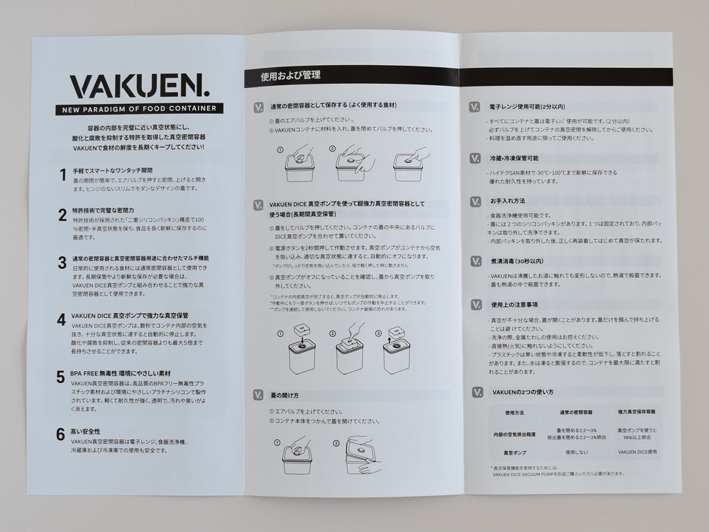 食品の鮮度を保ちながら、手軽に保存でき、扱いやすくて便利な【VAKUEN】。
