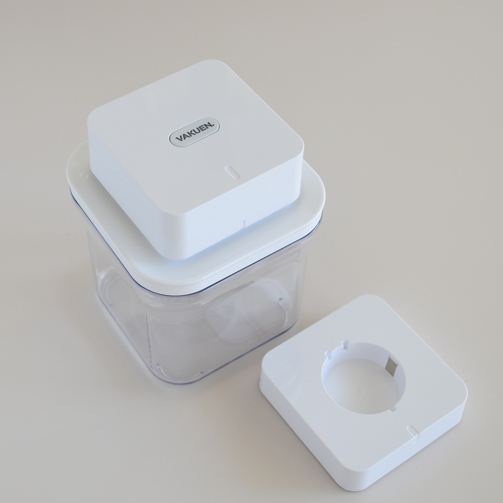 「ブーーーー」という動作音とともにコンテナ内の空気が吸い出され、適切な真空状態に達すると自動でオフ。