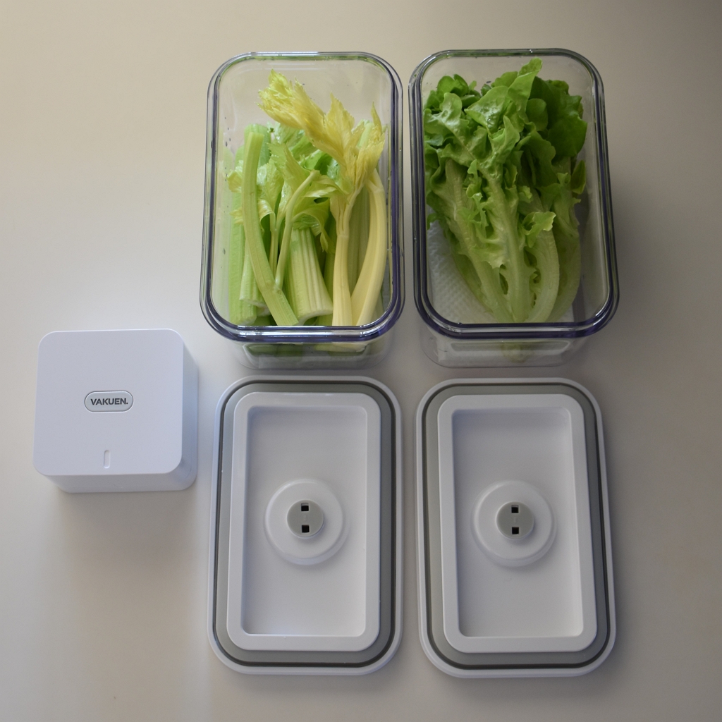 大きな3.1Lにはレタスを丸ごと保存することもできましたが、冷蔵庫の中でかなりのスペースをとることと、真空ポンプで空気を抜くのに時間がかかるので、日々の使用にはやや不向き。