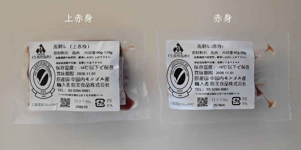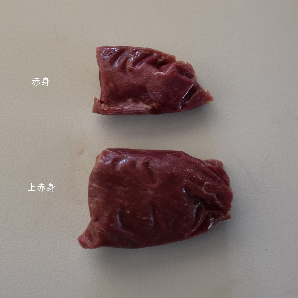 前回お試しさせていただいた赤身も少し残っていたので、上赤身と比較してみました。