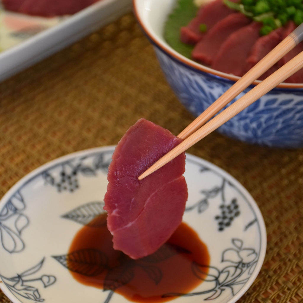 上赤身と特製醤油で、絶品馬刺しをご賞味あれ!