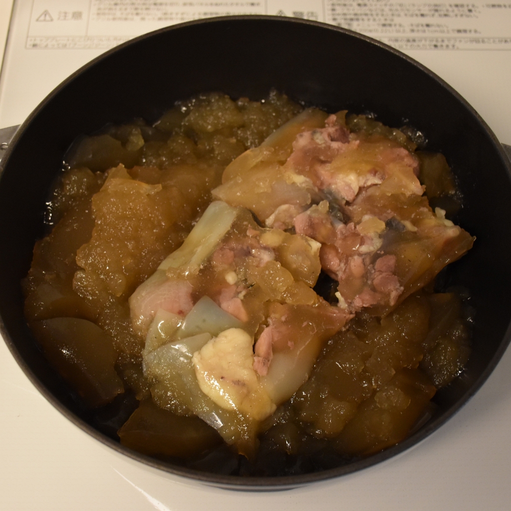 コラーゲンたっぷりの絶品スープと、ぷるぷるに柔らかく調理されたスッポン肉、たっぷりのもみじおろしと薬味のネギまでセットになったすっぽん鍋セット。