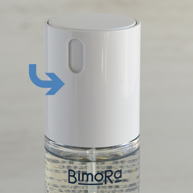キャップを開け、回転してノズルを合わせるとスプレーできます。