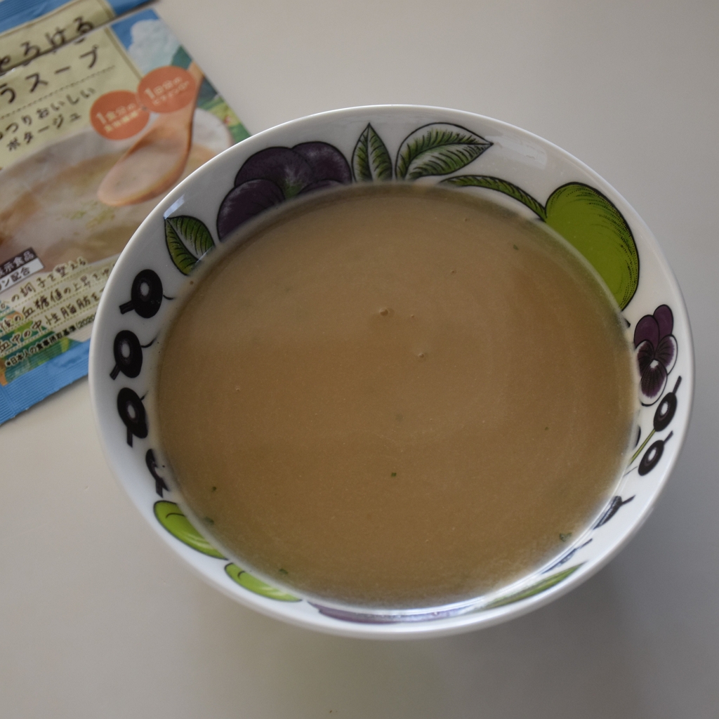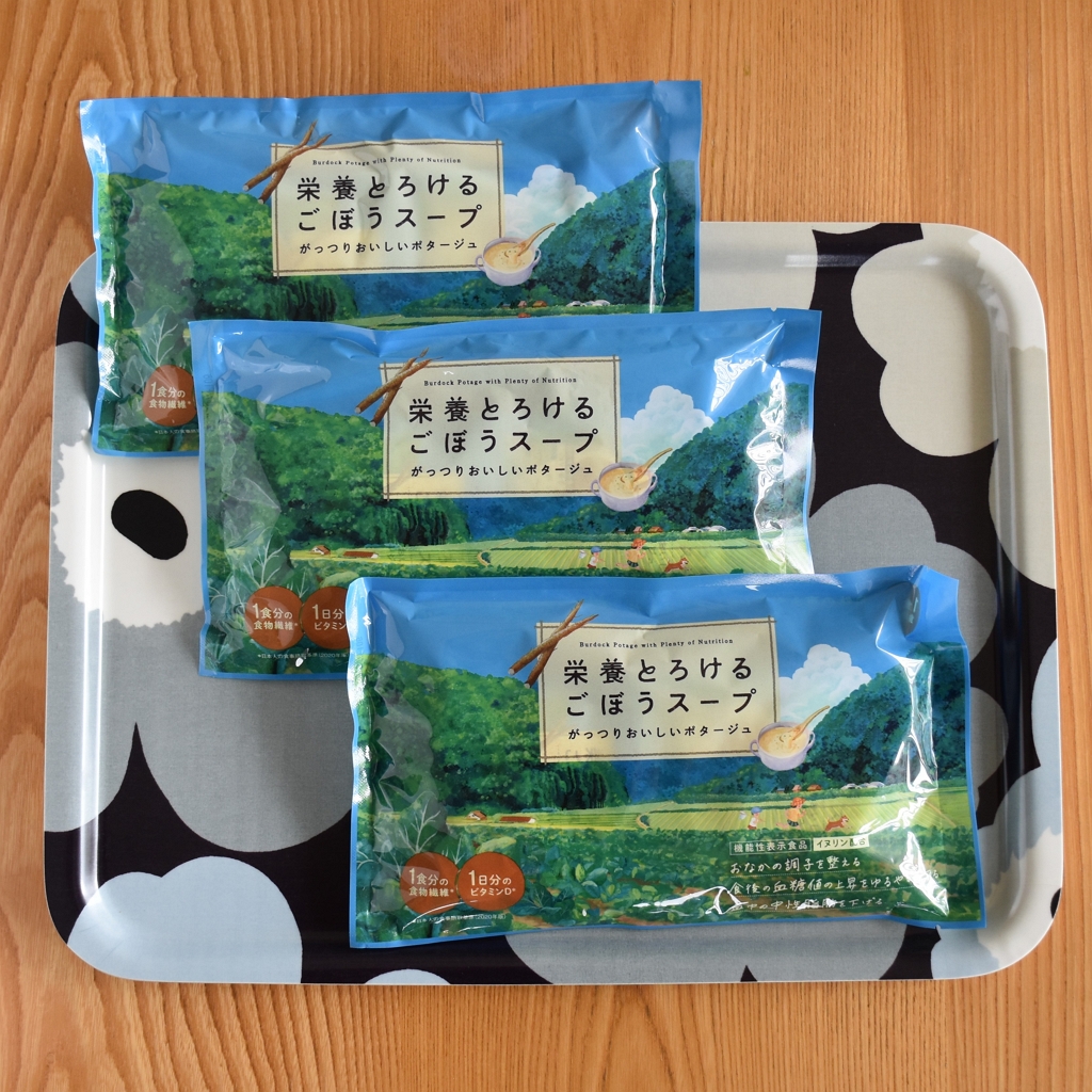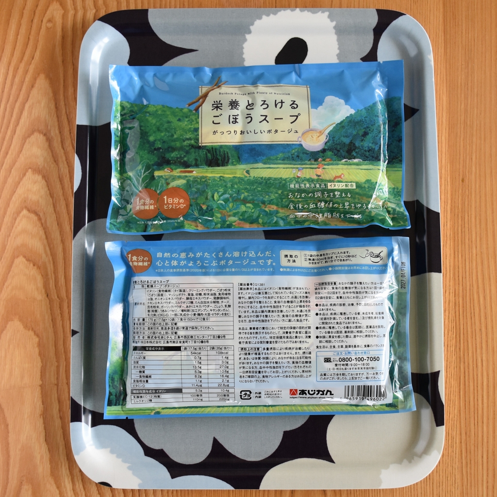 1袋で1食分の食物繊維と、1日分のビタミンDを摂れる【あじかん】さんの【栄養とろけるごぼうスープ】です。