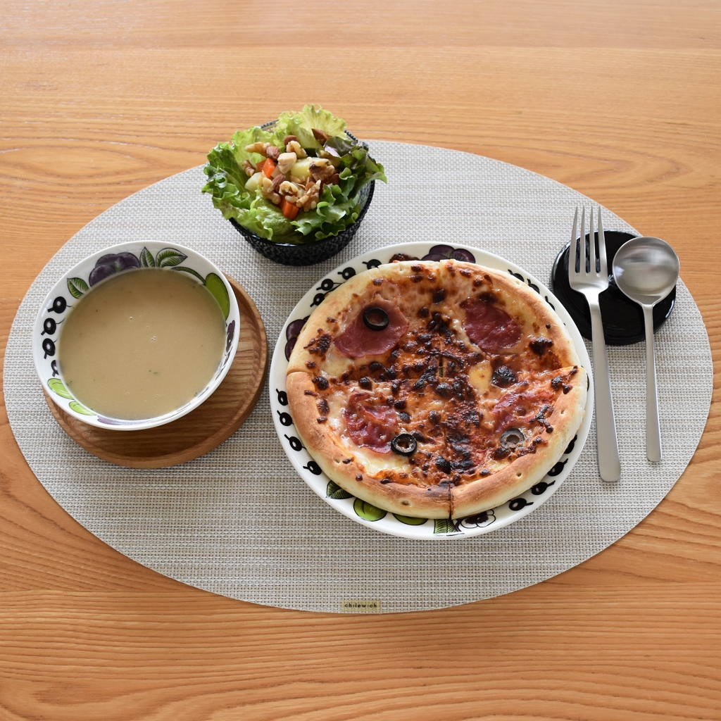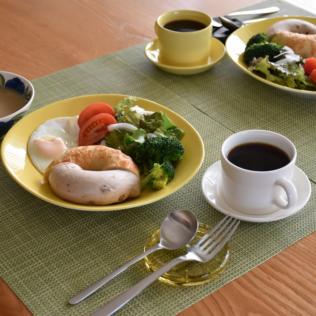 コーヒータイムには、プレート15cmとの組み合わせもいいけれど、食事時なら小さくまとまるのもいいです。