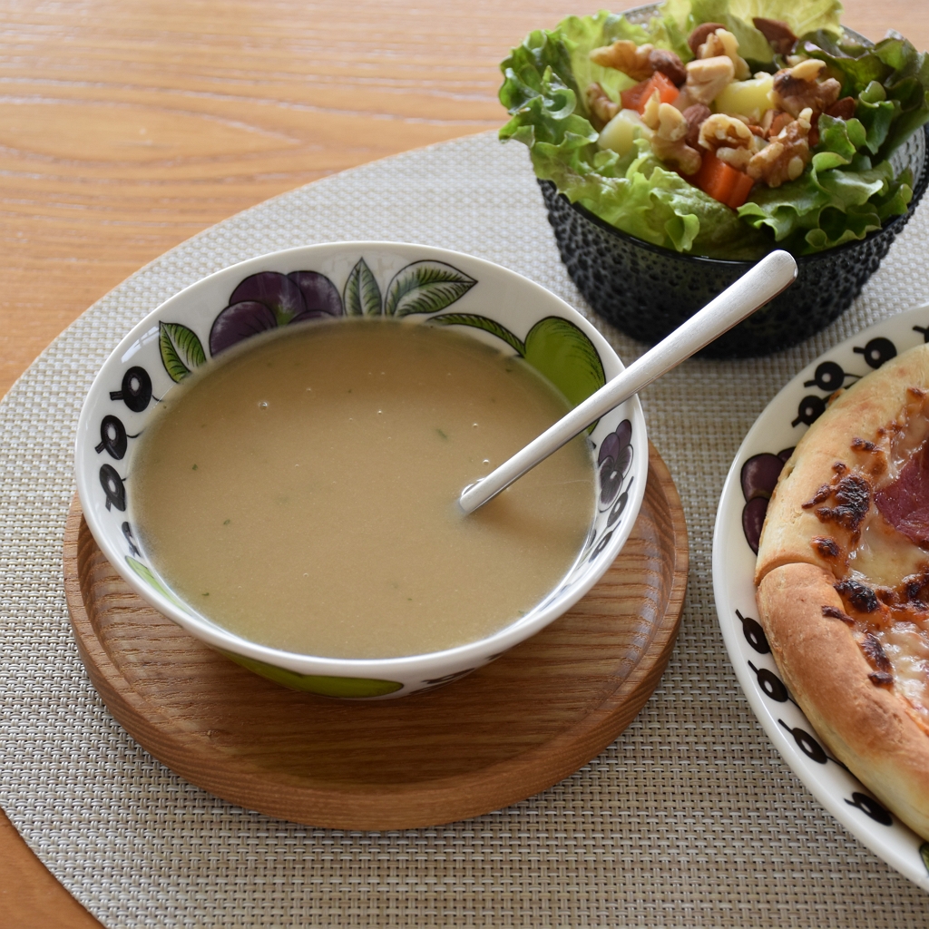 ごぼうスープ粉末1袋とお湯150mLは、ARABIA 13cmボウルで一杯分にちょうど良かったです。