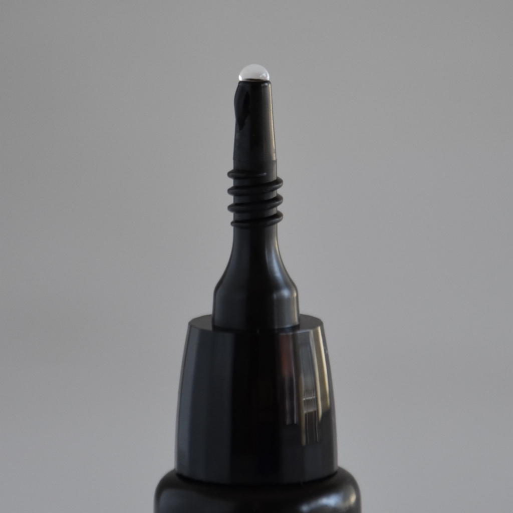 先端の細いノズルを直接頭皮に押し当て、セラムを塗布。