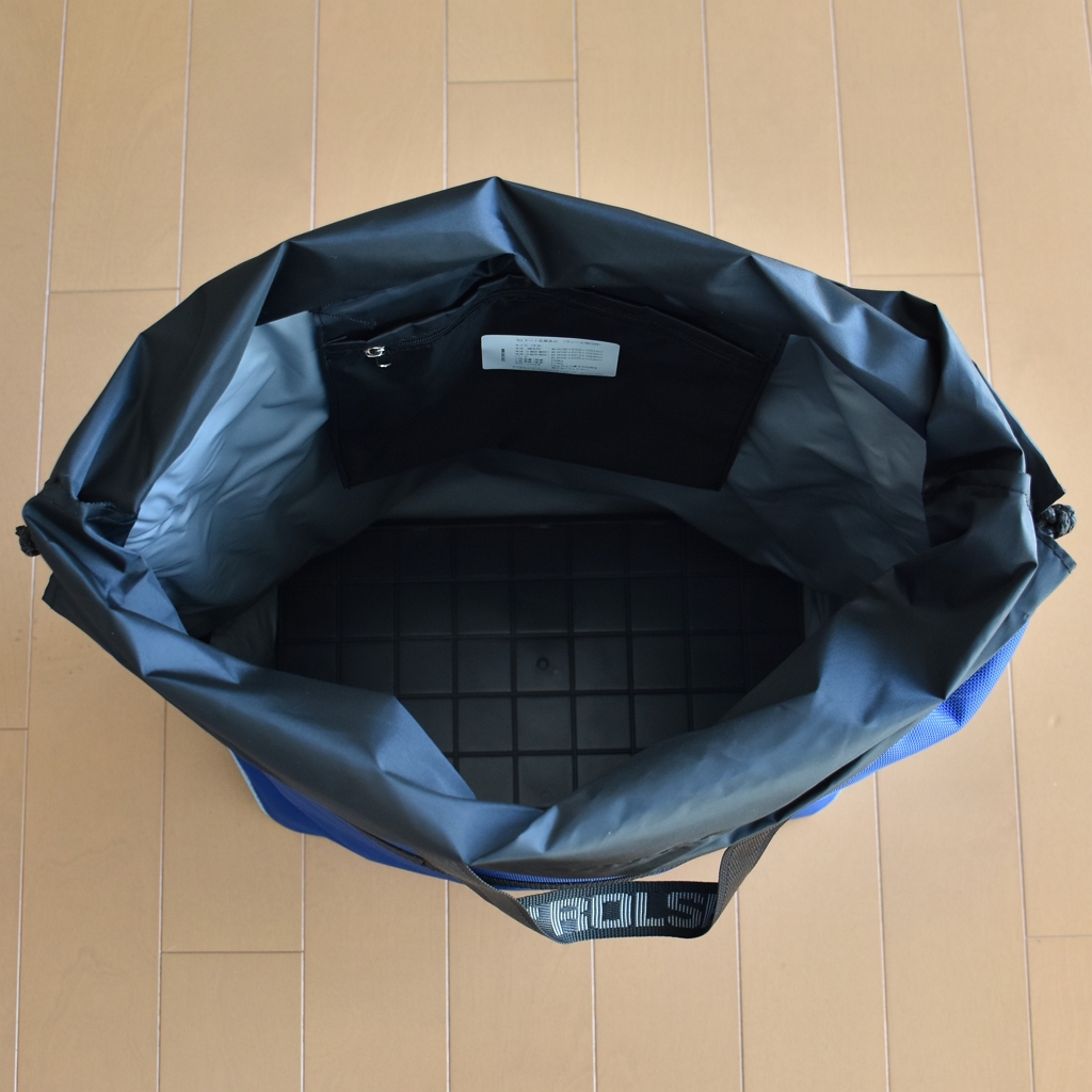 背面にはファスナーポケットと、カートに固定するためのベルト。